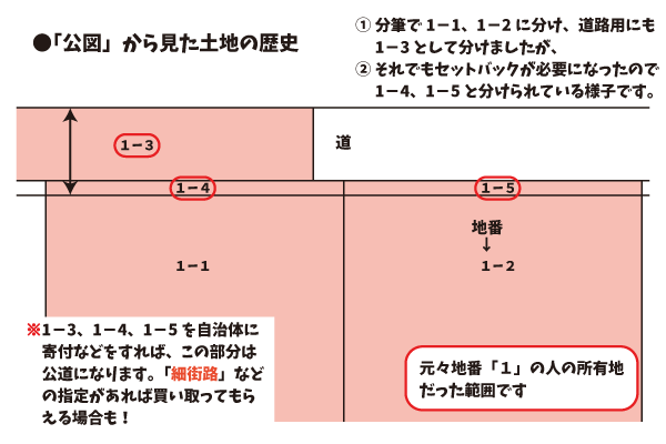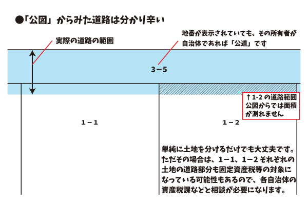 分筆をして道路部分の面積をはっきりさせれば、固定資産税等の評価から明確に除去し易い面もあります(道路は公衆財産として非課税です)。