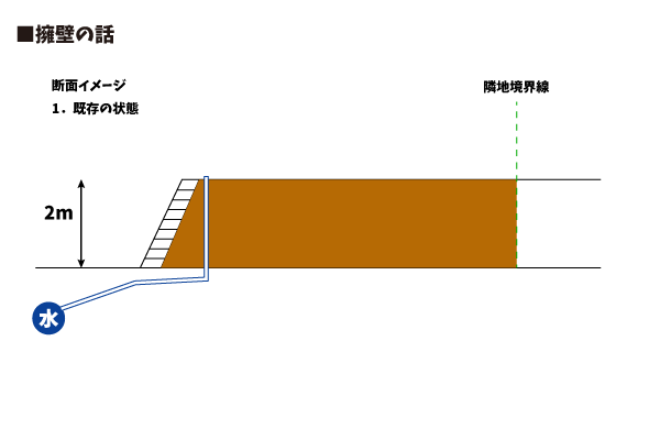 本件は、その(旧)宅地造成工事規制区域内で、ちょうど高低差が2mある宅地に「駐車場がなかった」ため、駐車場を新たに設けようとした際のお話です。